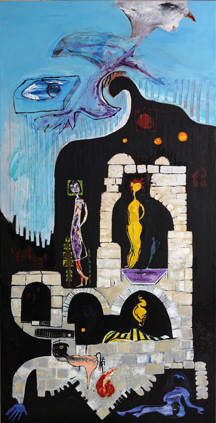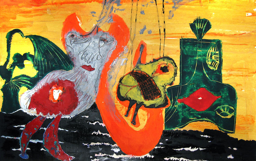 'Die Einladung', Ölfarbe und Pigmente auf Leinwand, 180*80cm, 2007