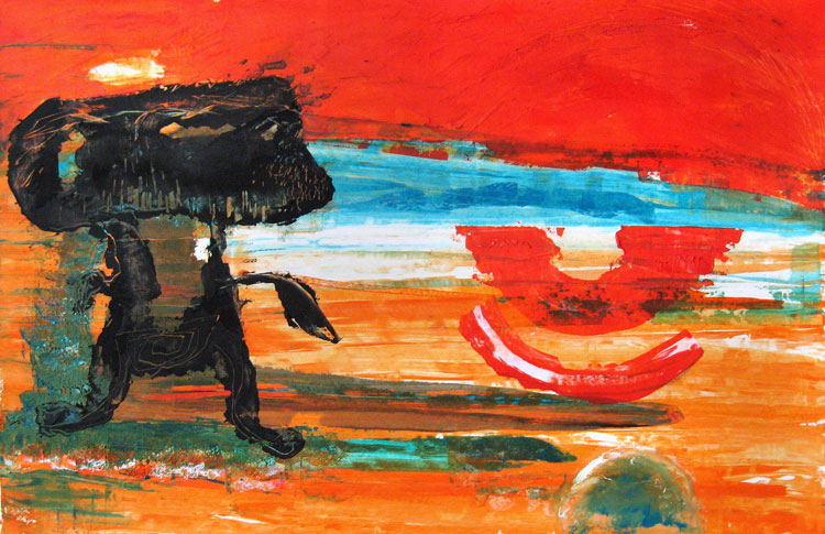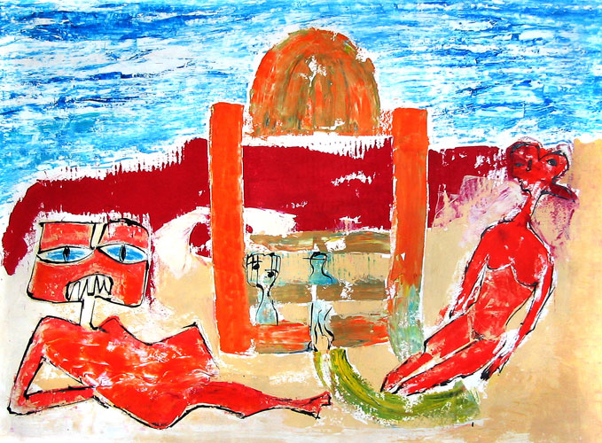 'on the beach', Pigmente und Acryl auf Papier, 40 *30 cm, 2001