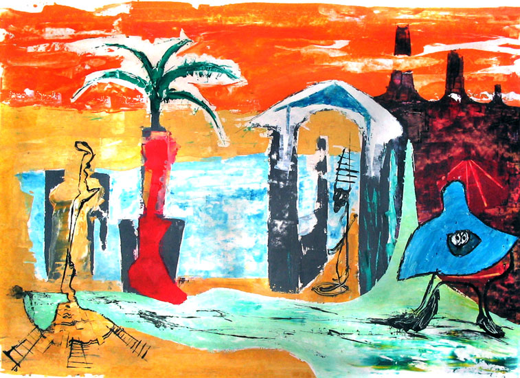 DURCH TÜREN GEH'N, Ölfarbe auf Papier, 100 * 70 cm, 2004