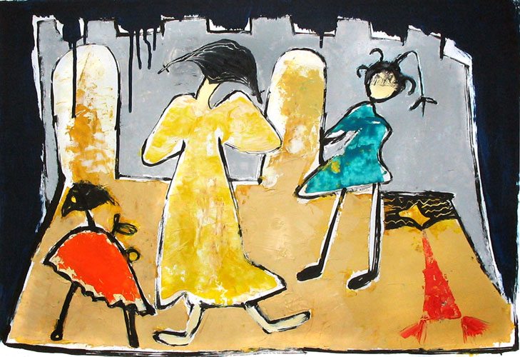 'dancing with ¶' , Ölfarbe auf Papier, 25*20cm, 2007